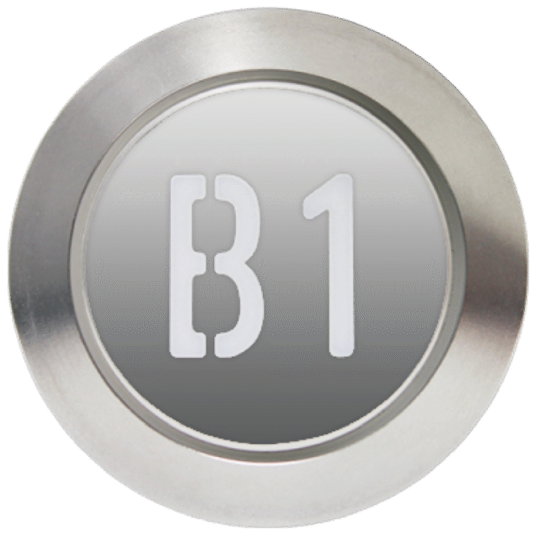 BT-2494-32 is a push elevator button with Red/White/Green illumination and Negative Trigger output. It runs on 24VDC, fits an opening of Ø37, and measures -. Standby color – supports clear call/acknowledge states.