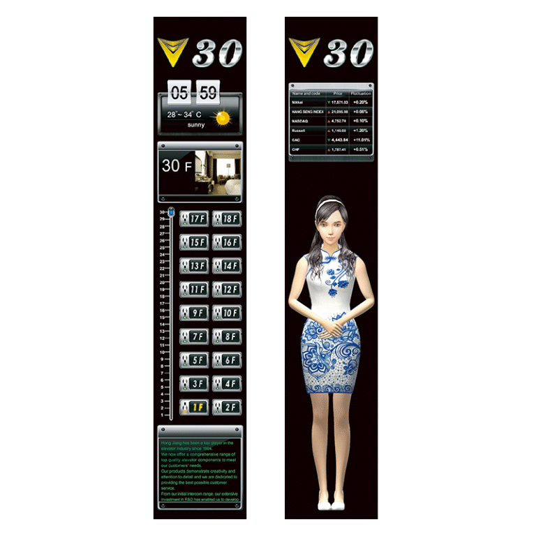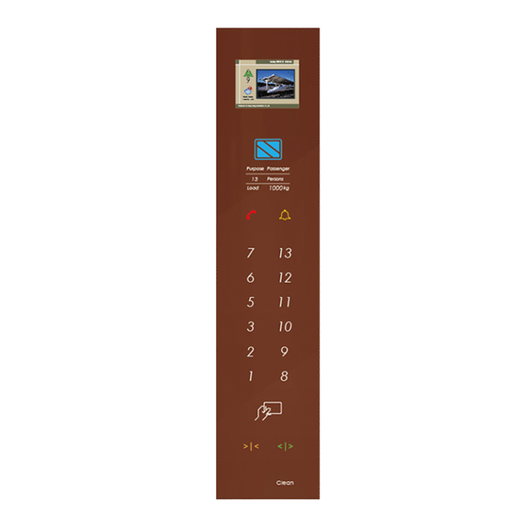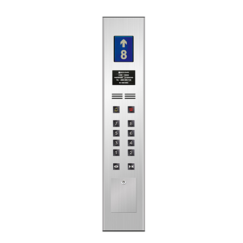 COP-1200-1 operating panel features a 5.6“ LCD display with Stainless Steel faceplate and Hairline Finish. Controls via Push Button BT-2409-13; size 1000x200x77 mm; rated life N/A hours.