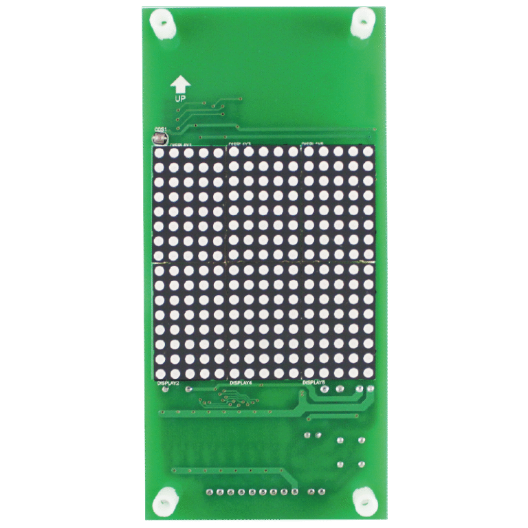 PDC-2416-P1 is an ultra dot-matrix display for elevators, built for clear directional and status indications. It runs on 24VDC with a wide 16-30VDC input, communicating over Negative Trigger for reliable integration. The 14×15 LED matrix and compact 170x80x25.9 enclosure deliver high visibility in tight spaces, while typical draw of 75mA supports efficient 24/7 use.
